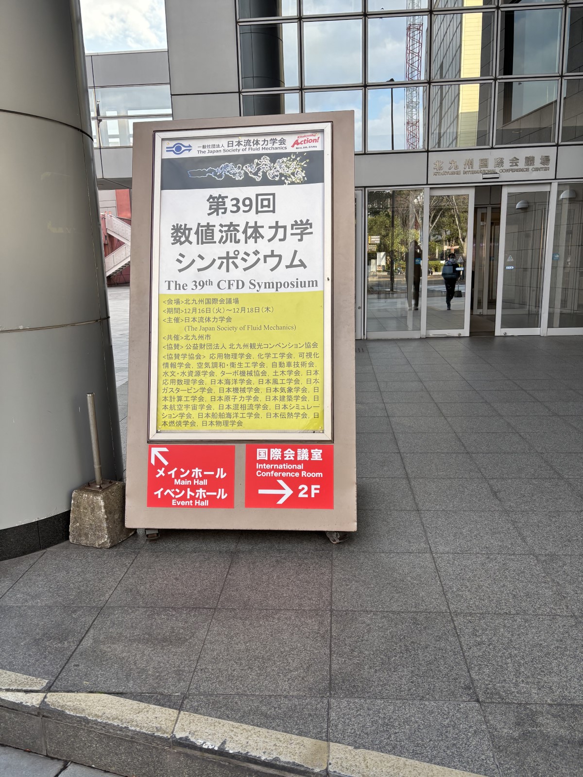 北九州国際会議場にて開催された第39回数値流体力学シンポジウムにて,仁村友洋 (特任助教)が口頭発表を行いました.