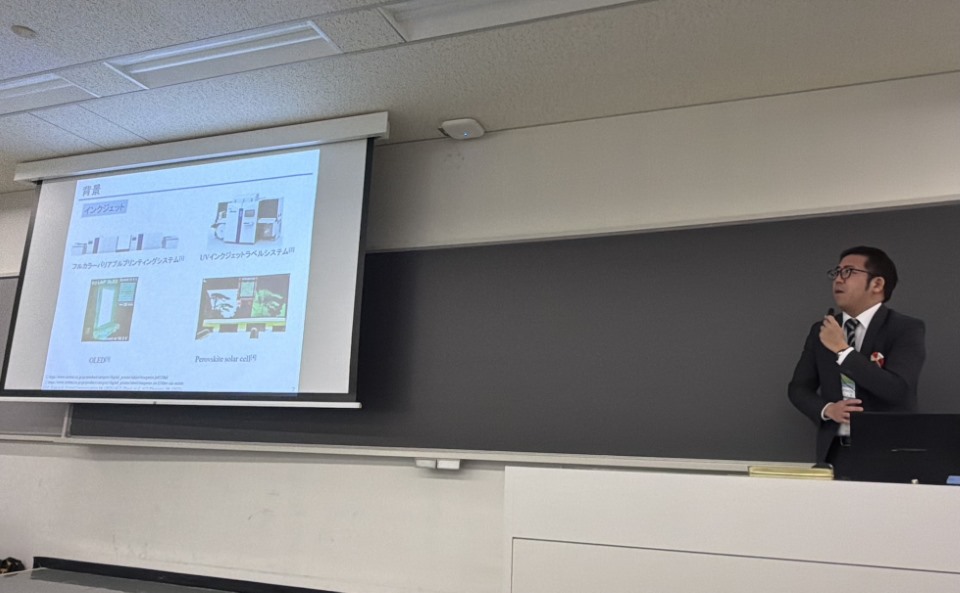 日本画像学会インクジェット技術部会メンバーによる研究室訪問があり,玉野真司教授が依頼講演を行いました.